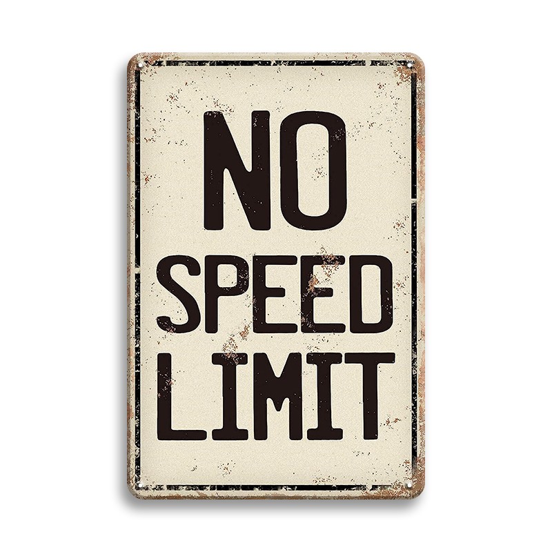 . No Speed Limit Sign Vintage Metal Signs Garage Sign For Man Cave Vintage Funny Garage Wall Decor Street Tin Signs Metal Street For Bedroom Road Sign Bedroom Decor For Men Hot Wheels Room Decor 8x12 Traffic sign indicating end of all restrictions (including speed limits) German autobahns are famous for having no universal motorway speed limit for some classes of vehicles, although about 30% of them do have some kind of temporary or permanent limit